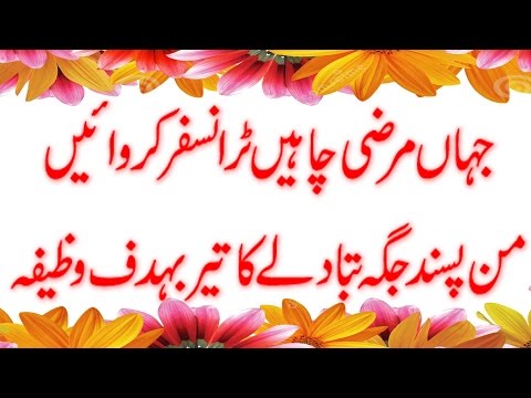 Transfer Tabadlay K Liye Wazifa 2017 - من پسند جگہ پرٹرانسفر کیلئے وظیفہ - Muslim People - Wazifa For Posting - Transfer Tabadlay K Liye Wazifa 2017 - من پسند جگہ پرٹرانسفر کیلئے وظیفہ - Muslim People If Your Want to do your transfer from one place to another place ...